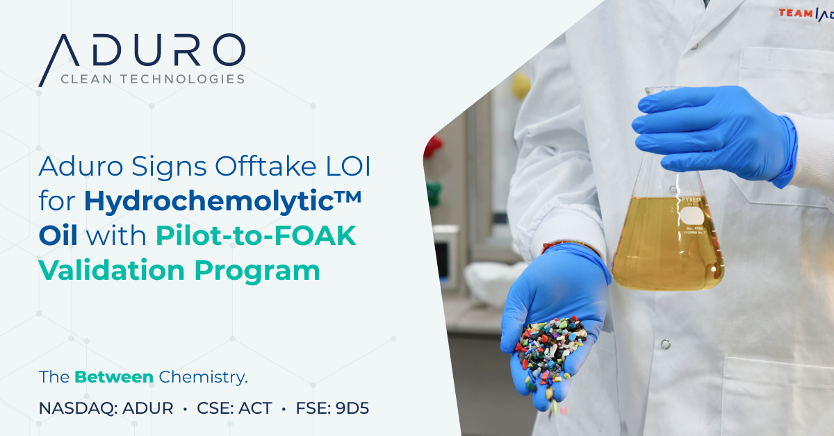 LONDON, Ontario, 13 mars 2026 (GLOBE NEWSWIRE) -- Aduro Clean Technologies Inc. (« Aduro » ou la « Société ») (Nasdaq : ADUR) (CSE : ACT) (FSE : 9D5), une société de technologies propres utilisant le pouvoir de la chimie pour transformer des matières premières de faible valeur, telles que les déchets plastiques, le bitume lourd et les huiles renouvelables, en ressources pour le XXIe siècle, annonce avoir signé une lettre d’intention non contraignante (« LOI ») avec une importante société internationale indépendante de premier plan spécialisée dans le négoce de matières premières, active dans l’approvisionnement, la logistique et la commercialisation de naphta et de flux d’hydrocarbures circulaires certifiés. La LOI établit un cadre permettant d’évaluer et de certifier l’huile Hydrochemolytic™ produite par la société en vue de futurs contrats d’achat.