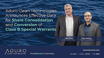 LONDON, Ontario, 17 août 2024 (GLOBE NEWSWIRE) -- Aduro Clean Technologies Inc. (« Aduro » ou la « Société ») (CSE : ACT) (OTCQX : ACTHF) (FSE : 9D50), une société technologique canadienne qui recycle chimiquement les matières premières de faible valeur comme les déchets plastiques, le bitume lourd et les huiles renouvelables en ressources adaptées au XXIe siècle, annonce son intention de consolider les actions ordinaires de la Société (individuellement, une « Action ») sur la base de trois et un quart (3,25) Actions avant consolidation pour une (1) Action après consolidation (la « Consolidation »). La Consolidation entrera en vigueur à l’ouverture du marché le 20 août 2024. Le symbole « ACT » reste inchangé. Le nouveau numéro CUSIP est 007408206.