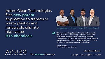 “This new patent application filing formally expands the Aduro 'Clean Technologies' theme beyond its unique Hydrochemolytic™ technology platform. Importantly, it signals the Company’s mission and the capability of our scientists and engineers to continue developing consequential, new technology,” said Marcus Trygstad, Co-Founder and Principal Scientist at Aduro. Trygstad added, “This new innovation reinforces that Aduro is committed to becoming a force in the sustainability arena where waste plastics and renewable feedstocks are transformed into materials needed by society. It’s who we are and it’s what we do.”