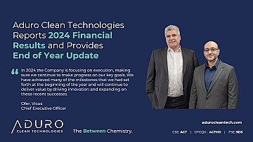 LONDON, Ontario, Sept. 12, 2024 (GLOBE NEWSWIRE) -- Aduro Clean Technologies Inc. (“Aduro” or the “Company”) (CSE: ACT) (OTCQX: ACTHD) (FSE: 9D5), a clean technology company using the power of chemistry to transform lower value feedstocks, like waste plastics, heavy bitumen, and renewable oils, into resources for the 21st century, has filed its audited financial results for the year ended May 31, 2024, and has provided the following highlights. All financial information in this press release is reported in Canadian dollars, unless otherwise indicated.