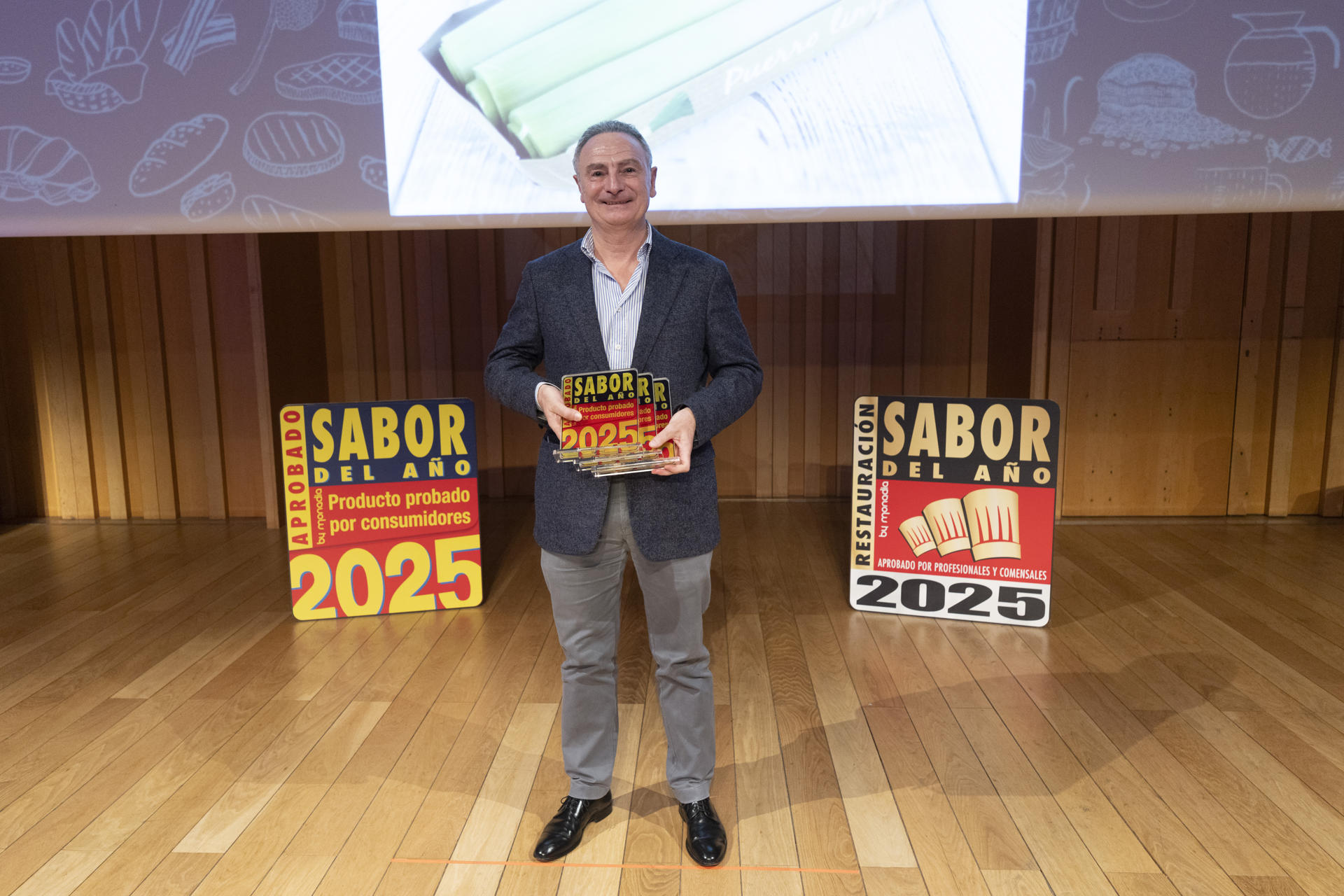 La empresa Vega Tajo recoge varios galardones en los premios Sabor del Año 2025 que han distinguido este miércoles en Barcelona a más de cien productos alimentarios de venta al por menor y restauración por su calidad, sabor y contribución a la cultura gastronómica, un sello que ha llegado a doblar las ventas de productos premiados en 2024. EFE/Marta Pérez