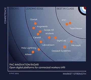 GÖPPINGEN, Germany, July 25, 2024 /PRNewswire/ -- TeamViewer, a leading global provider of remote connectivity and workplace digitalization solutions, today announced it was named the Best-in-Class solution among Open Digital Platforms for Connected Workers (AR) in PAC Innovation Radar 2024. Analysts recognized TeamViewer for its strengths in addressing relevant AR use cases, particularly in manual order picking with smart glasses and other wearable devices, establishing strong partnerships, expanding go-to-market strategies, and maintaining robust financial health, according to PAC's evaluation.