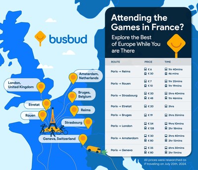 MONTREAL, July 25, 2024 /PRNewswire/ -- As the world turns its attention to Paris for the summer games, Busbud, a global ground transportation booking platform, reveals its findings on affordable travel options for travelers. With the games drawing millions to the French capital, travelers have a unique opportunity to transform their visit into a broader European experience. Busbud's research highlights diverse routes that allow travelers to explore French cities and nearby European destinations on a budget.