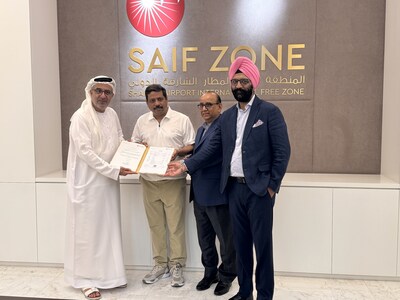 Mr. Raed Bukhatir, SAIF Zone's Director of Commercial, graced the occasion of Dubai office inauguration along with key executives from AGI Greenpac Limited, Mr. Rajesh Khosla - CEO, AGI Greenpac Limited, Mr. O.P. Pandey - CFO, AGI Greenpac Limited, and Mr. Manpreet Singh - President of International Sales & Chief Strategy Officer, AGI Greenpac Limited.