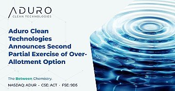 Aduro Clean Technologies Announces Second Partial Exercise of Over-Allotment Option