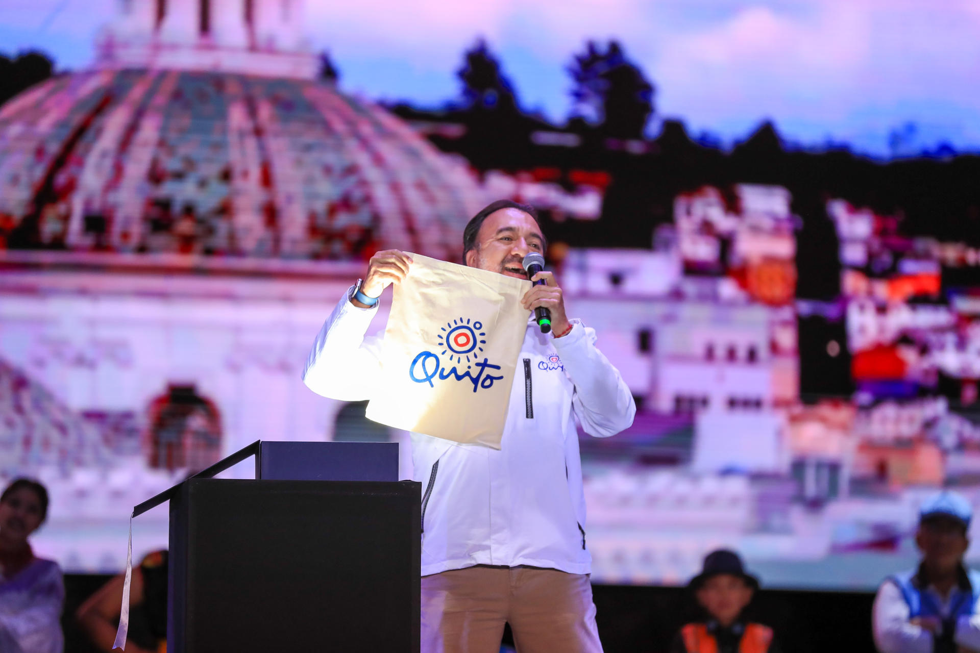 «La marca ciudad sirve para presentar a Quito al mundo y, para aquellos que tienen la desdicha de no conocer a la ciudad más linda del mundo, se animen a venir a la capital de la República, a la ciudad del sol recto», expresó el alcalde de Quito, Pabel Muñoz, durante la presentación de la nueva imagen de la urbe, llevada a cabo en la noche del jueves.
