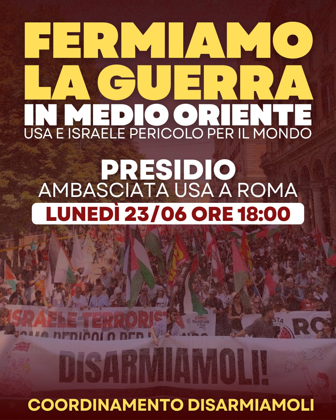 23 Giugno - Ore 18 - Ambasciata statunitense: Fermiamo la guerra in medio oriente, USA e Israele pericolo per il mondo