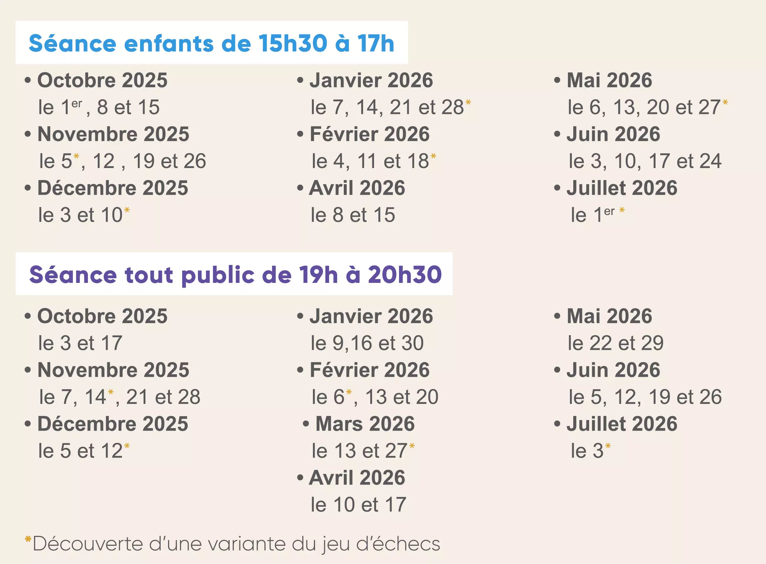 - Animations ponctuelles (freestyle chess, dame cachée, et bien d'autres surprises !)