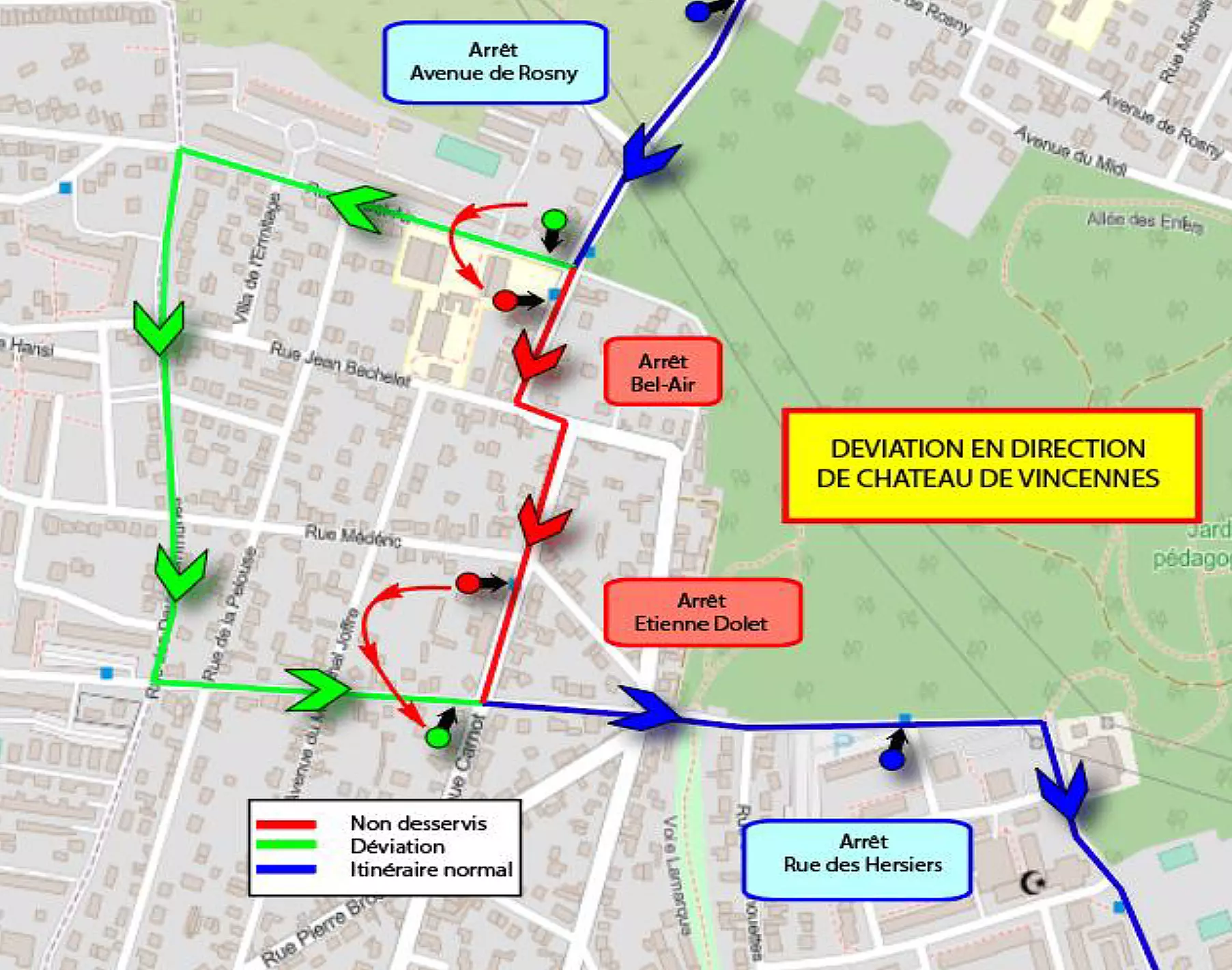 L’arrêt Bel-Air est reporté au 55-57 rue du bel-Air et l’arrêt Etienne Dolet est reporté au 20 rue du bois d’Avron.