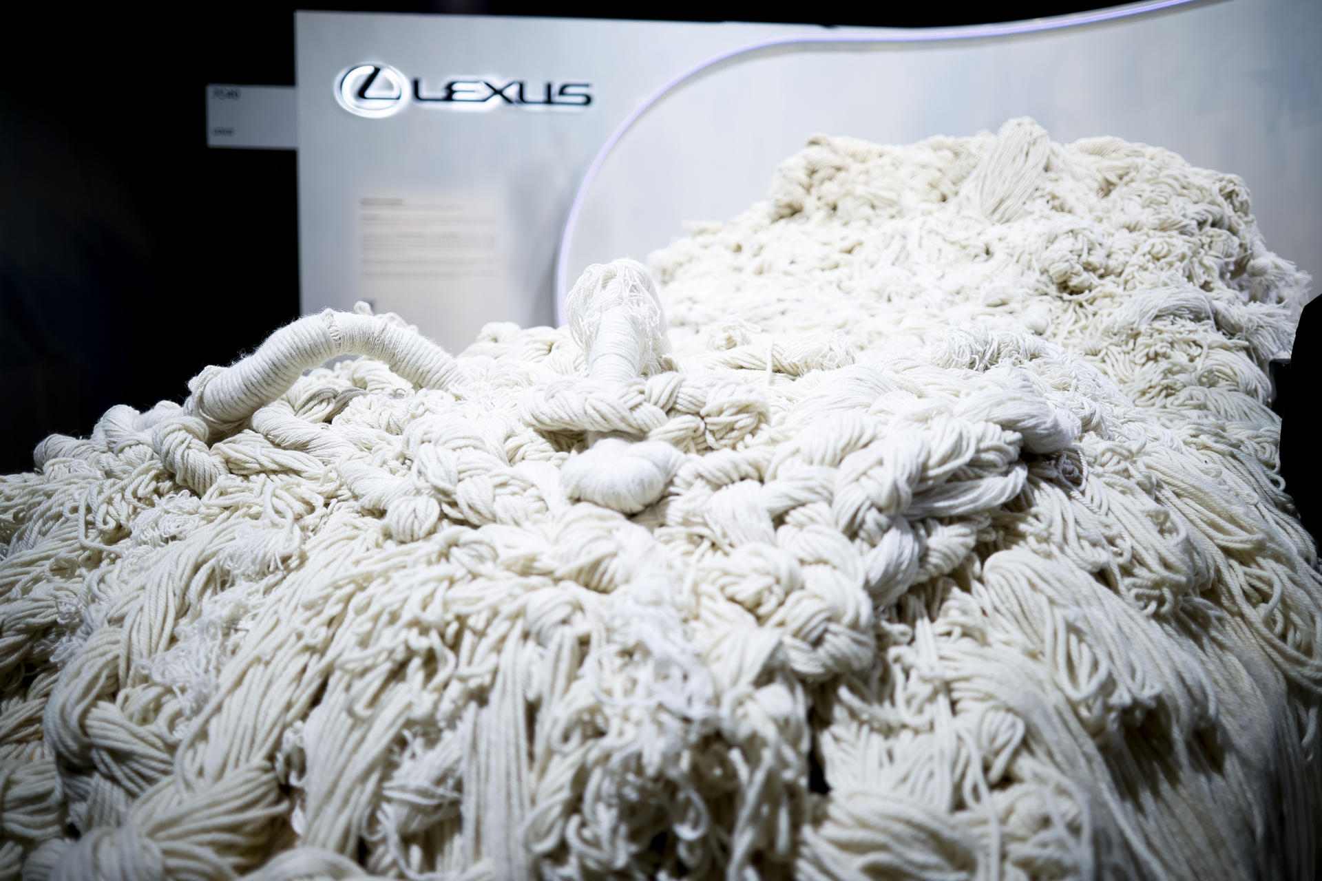 La artista especializada en trabajo textil ha desvelado a EFE que el material empleado se basa «en el cordón que utilizaban las geishas japonesas y con el que se trenzaban las espadas y armaduras de los ninjas”, para recrear una escultura que fusiona la “técnica del tapiz” con la silueta del coche.