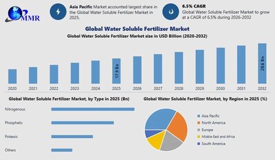 PUNE, India, March 13, 2026 /PRNewswire/ -- Water Soluble Fertilizer Market size was valued at USD 17.9 billion in 2025 and is projected to grow at a CAGR of 6.5% from 2026 to 2032, reaching an estimated market size of USD 28.6 billion.