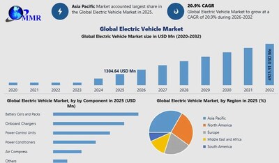 PUNE, India, March 16, 2026 /PRNewswire/ -- Global Electric Vehicle (EV) Market size was valued at USD 1,304.64 Million in 2025 and is projected to expand at a robust CAGR of 20.9% from 2025 to 2032, reaching approximately USD 4,925.91 Million.