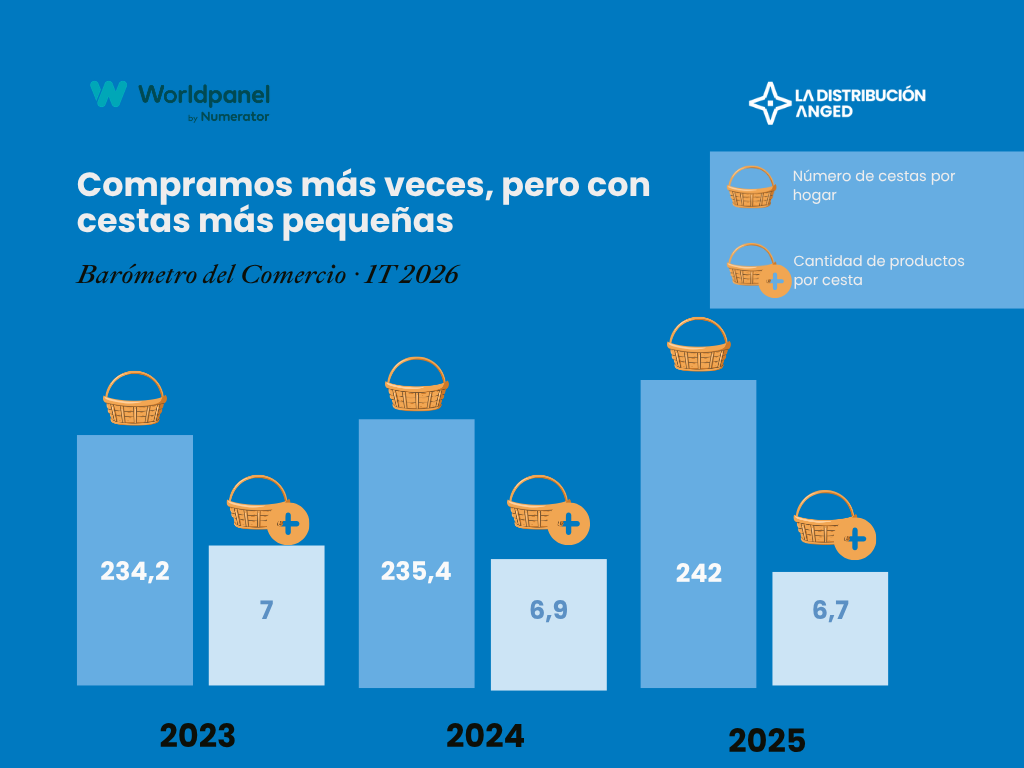 - Incremento del número de cestas por hogar, con más de 240 actos de compra al año, lo que refleja una mayor frecuencia
