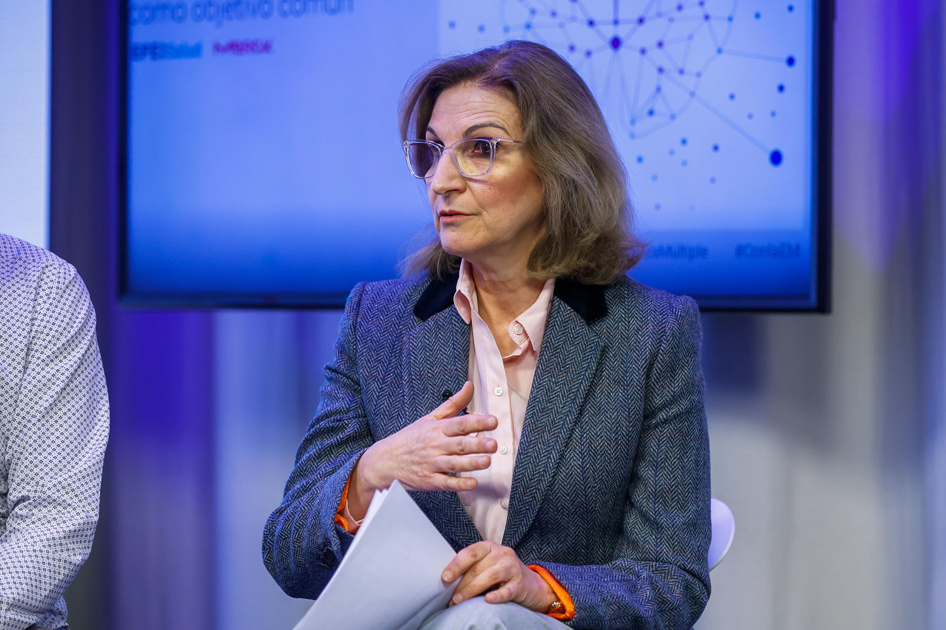 Ana Torredemer Marcet, presidenta de Esclerosis Múltiple España (EME) participa en el evento Diálogos EFE Salud «La Esclerosis Múltiple como objetivo común», en la sede de la Agencia Efe, en Madrid. EFE/David Fernández