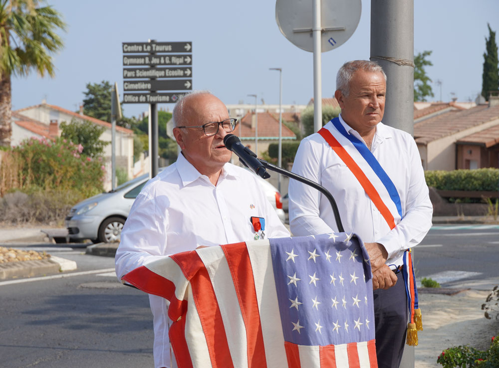 80 ans tout juste après cet acte héroïque, Thierry Baëza, maire de Mèze et Marcel Graine, conseiller municipal aux associations patriotiques, ont prononcé un discours à la mémoire de ce combattant de la libération.