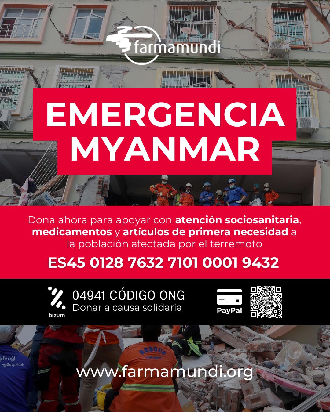 En 2008, Farmamundi ya respondió a otra emergencia humanitaria en Myanmar tras el devastador paso del ciclón Nargis, que causó más de 22.000 muertes y dejó a miles de personas en situación de extrema vulnerabilidad. A través de su Área Logística Humanitaria, la organización envió tres toneladas de medicamentos y material sanitario, incluyendo kits de emergencia para atender a 10.000 personas durante tres meses, equipos de potabilización de agua y suministros esenciales para prevenir enfermedades.