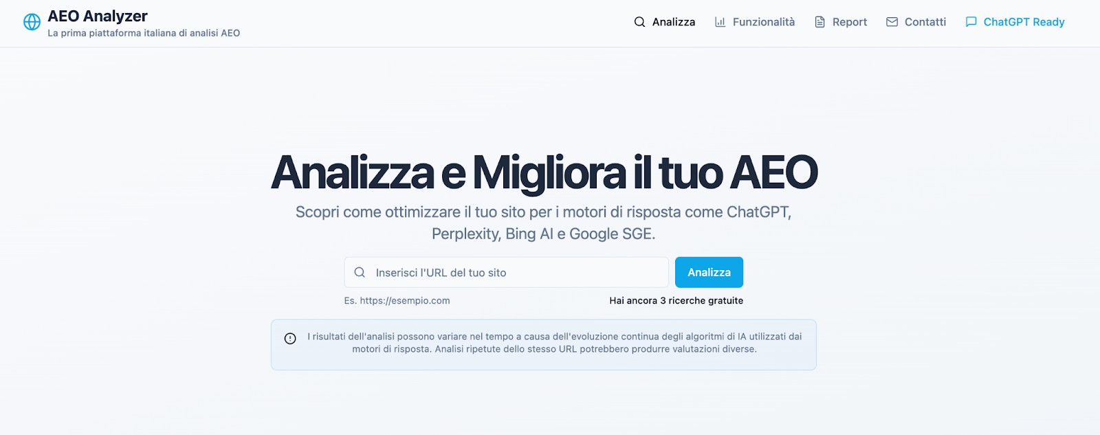 Nasce AEO Analyzer: il primo tool italiano per dominare l’era dell’Answer Engine Optimization