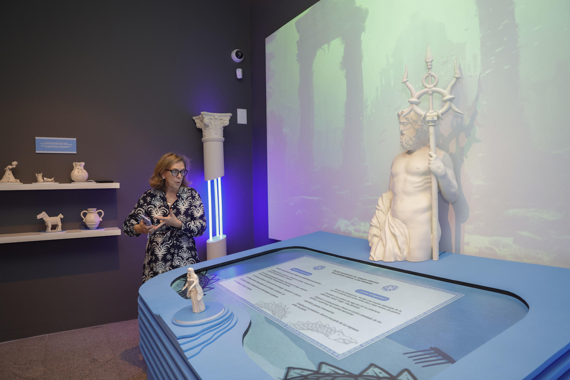 Hay una audioguía disponible y también un panel con inteligencia artificial para convertir la fotografía de una persona actual a su aspecto en la era griega.