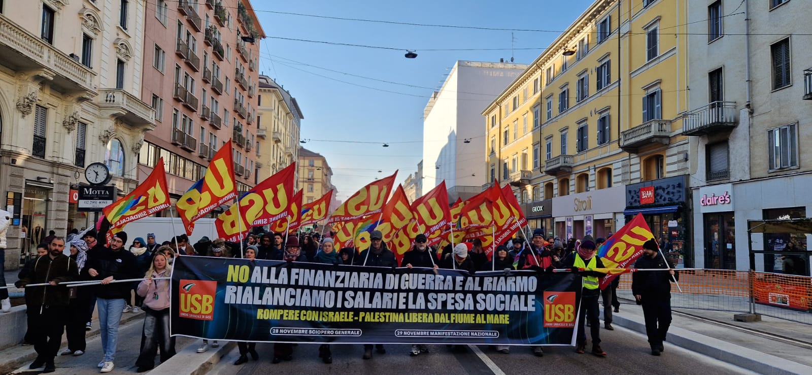 Da tutte le piazze è stato poi rilanciato l’appuntamento di domani sabato 29 alle ore 14.00 a Roma da porta San Paolo per la grande manifestazione nazionale promossa sugli stessi temi dello sciopero generale e che verrà aperta da un grande striscione: contro la finanziaria di guerra e il governo Meloni – Palestina libera – rompere con Israele.