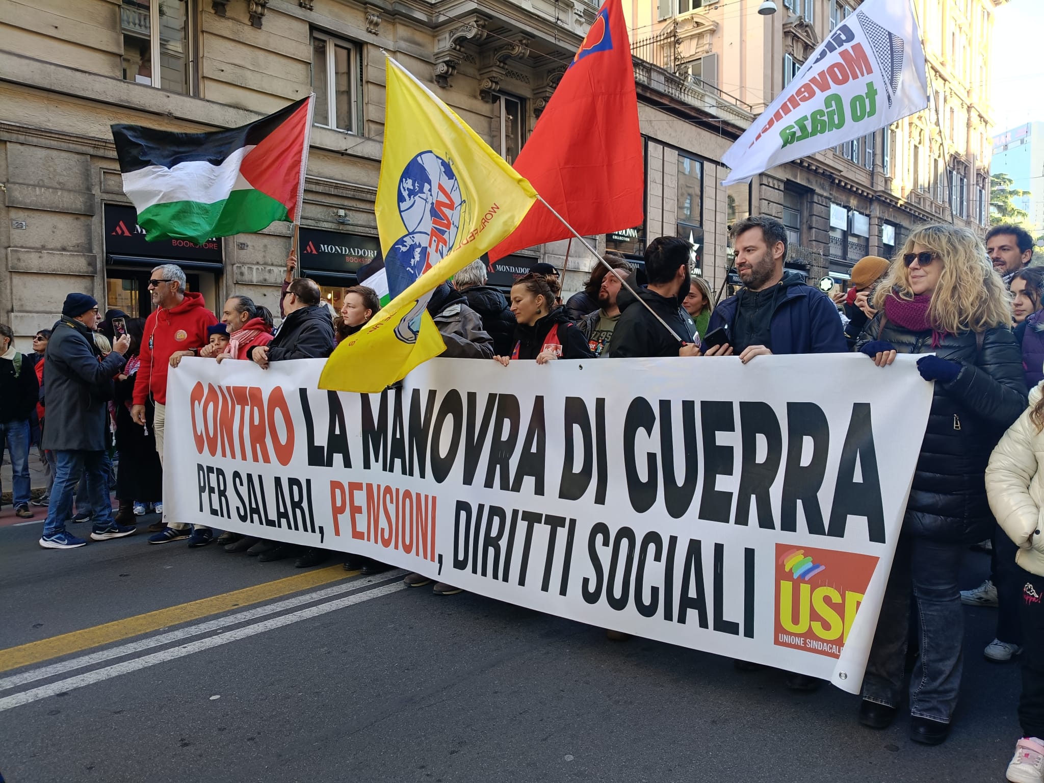Manifestazioni in più di 50 città, con centinaia di migliaia di persone che hanno protestato contro la finanziaria di guerra del governo Meloni: questo l’esito più evidente di uno sciopero generale, il terzo in soli due mesi, che ha collegato il sostegno al popolo palestinese con la rivendicazione di una diversa politica economica. Le manifestazioni più grandi si sono registrate a Milano, a Bologna e a Genova, dove in testa al corteo, assieme ai portuali, hanno sfilato Greta Thunberg e Francesca Albanese. A Roma, in piazza Montecitorio, si è organizzata la bocciatura di massa della finanziaria di guerra: l’USB ha proposto una contro finanziaria aderente al dettato costituzionale.