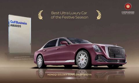With its exceptional expression of Eastern aesthetics and masterful craftsmanship, the Hongqi Golden Sunflower Guoya was honored with the “Best Ultra Luxury Car of the Festive Season” Quarterly Award, presented by Gulf Business.