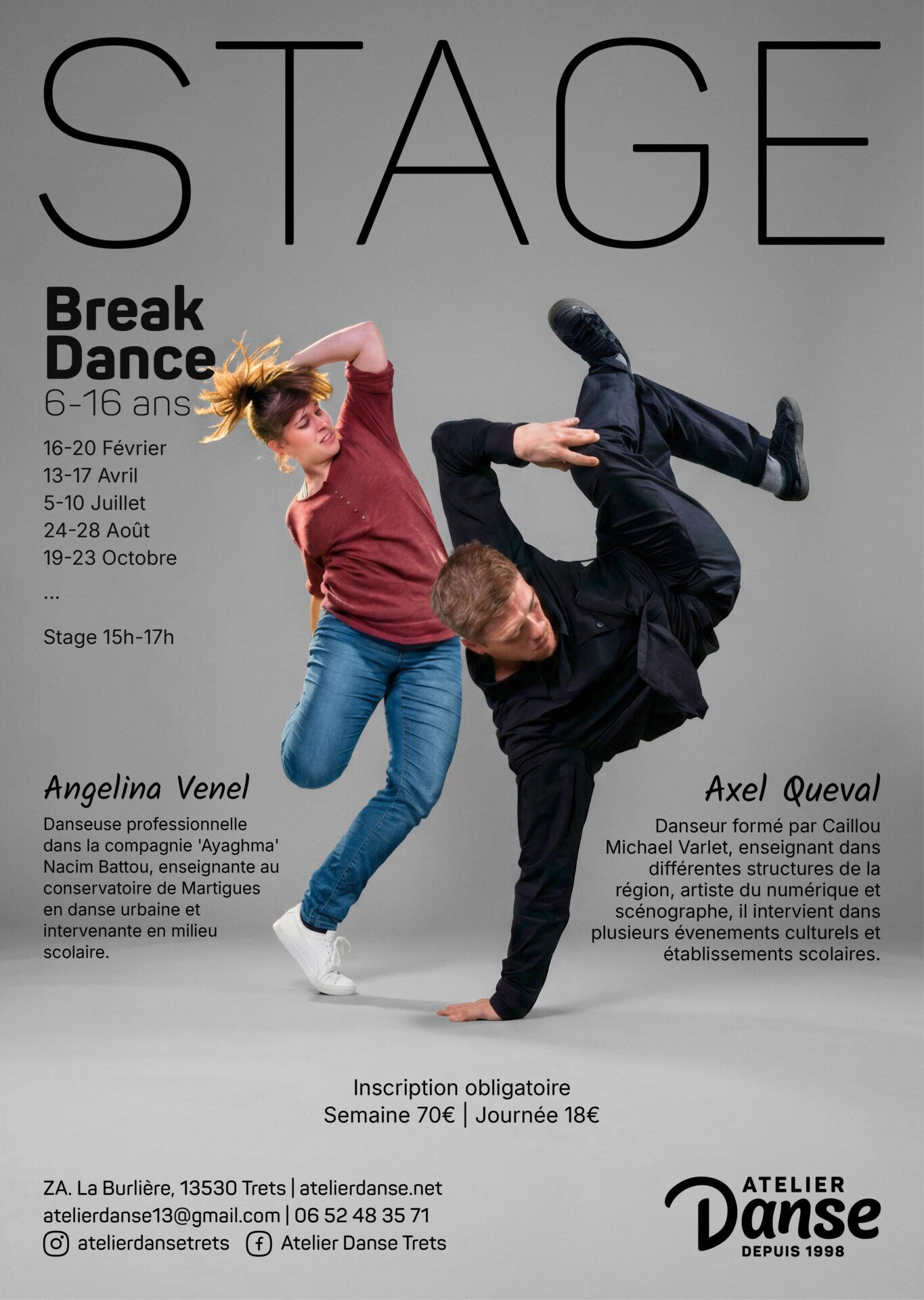 Fiche d’inscription disponible en ligne sur https://www.atelierdanse.net/docs/StageBreakFicInscription.pdf