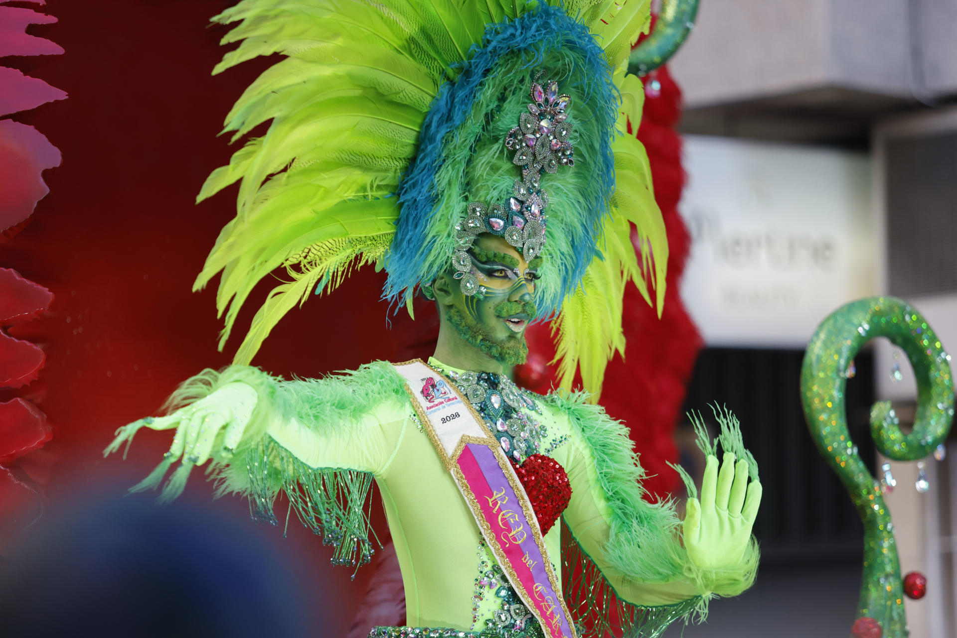 El rey, Iván Quesada, de la comparsa Soul Dance, ha desfilado sobre una navideña carroza con una de las bolas del árbol como protagonista. Y lo ha hecho bajo el título ‘Ni María carey se atrevió tanto’. Ha cerrado este desfile la reina del Carnaval, Laura Alberca, de la comparsa ‘Ni no ni naaaa’.