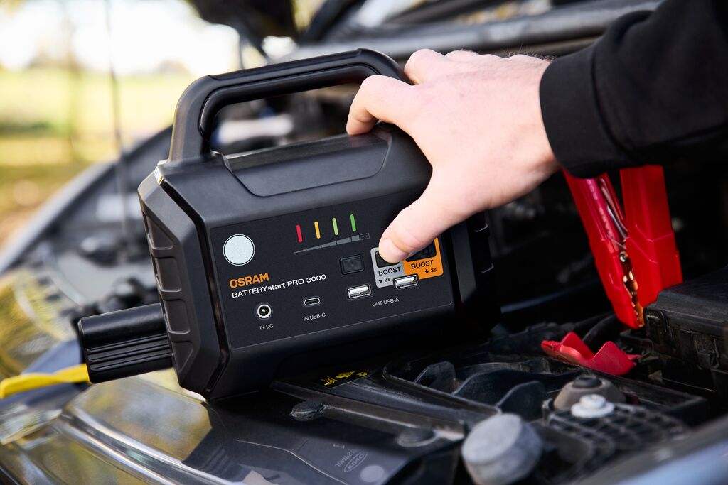 Il nuovo BATTERYstart Pro 3000 è compatibile con 12 V e 24 V e avvia tutti i motori a benzina e i motori diesel fino a 13 litri, il che lo rende adatto a un'ampia gamma di veicoli, compresi autocarri pesanti e trattori.