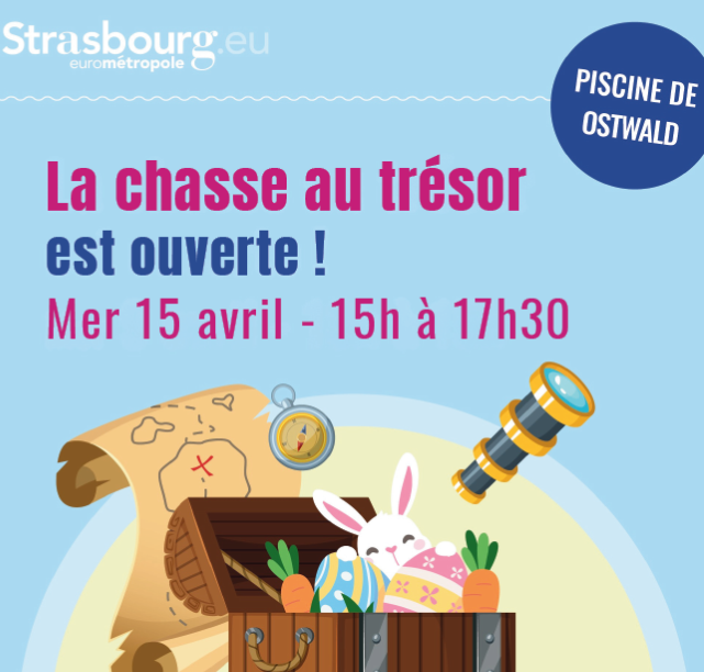Partez à la chasse au trésor à la piscine d’Ostwald, le mercredi 15 avril de 15h à 17h30.