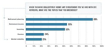 Additionally, retirement planning and retirement income are the top topics discussed with advisors. Transitioning to retirement can be a particularly complex and emotional milestone for employees and the ability to navigate it with an advisor who is free of product conflict is a valued, high-touch feature of managed accounts and not available with most other in-plan advice solutions. EFE’s embedded income solution, Income Beyond Retirement, helps employees build retirement income strategies with the support of an advisor.