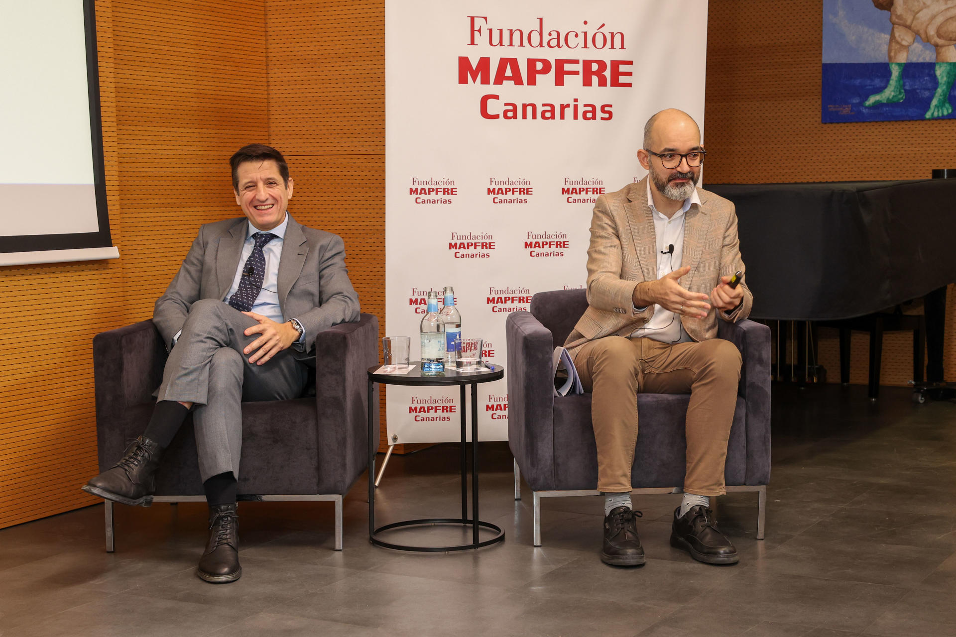 El Centro de Investigación Ageingnomics de la Fundación Mapfre en Canarias ha presentado una guía sobre las opciones financieras que la vivienda en propiedad ofrece a la población sénior de cada a complementar la pensión y obtener ingresos adicionales. En la imagen, los autores de la guía, el catedrático de Economía Juan Ángel Lafuente (i), y el profesor titular de Economía Financiera y Contabilidad en la Universidad Carlos III de Madrid y Pedro Serrano (d), durante la presentación. EFE/ Elvira Urquijo A.