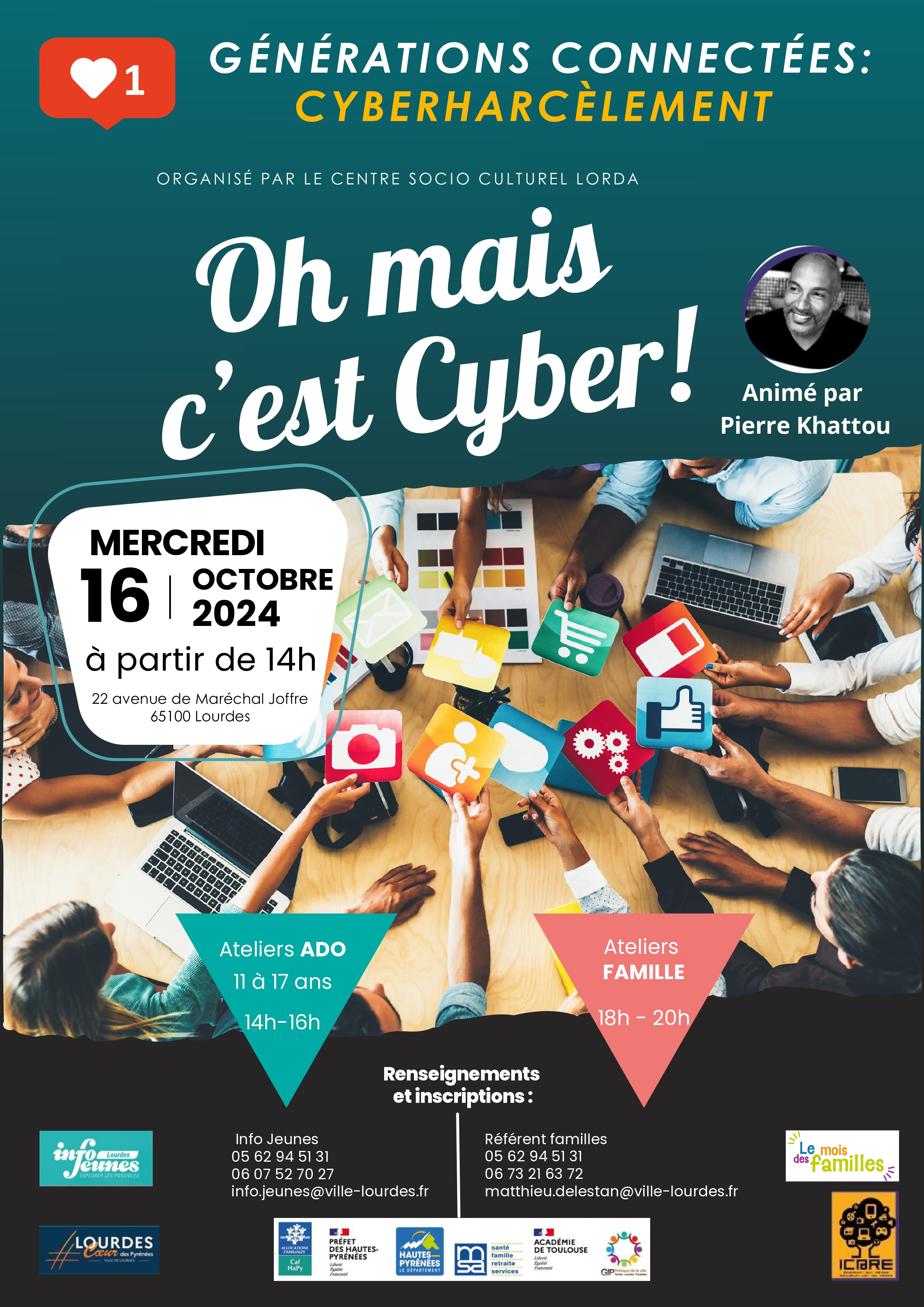 Le Centre Socio-Culturel Lorda organise une animation “ Oh mais c’est cyber “ mercredi 16 octobre dans ses locaux 22 avenue Joffre. Cette animation s’inscrit dans le cadre du Mois des familles.
