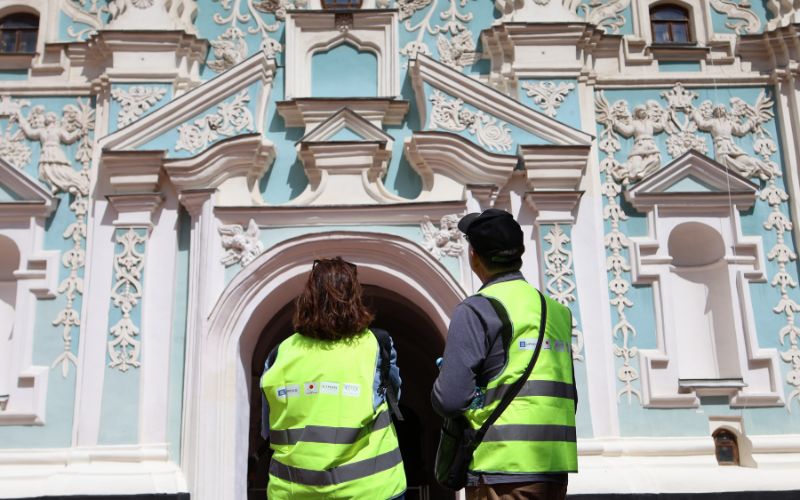 Les professionnels du patrimoine ukrainien, notamment le personnel de la zone de conservation nationale de Sainte-Sophie de Kiev et de la réserve nationale de la Laure de Kyiv-Pechersk ont bénéficié d'une formation sur les techniques de photographie numérique et de photogrammétrie. Ils ont également reçu des outils analytiques pour la documentation préalablement existante de certains éléments du site, ainsi que pour évaluer les mesures et procédures de sécurité, et préparer des plans d'urgence. Cette mission avait pour objectif de renforcer leurs compétences et de souligner l'importance cruciale de l'enregistrement des caractéristiques physiques des structures et des paysages historiques afin de faciliter leur entretien préventif, leur suivi et conservation. À terme, une documentation technique avancée en 3D des éléments du site sera élaborée par l'équipe de l'ICOMOS en collaboration avec l'UNESCO, destinée aux autorités nationales ukrainiennes.