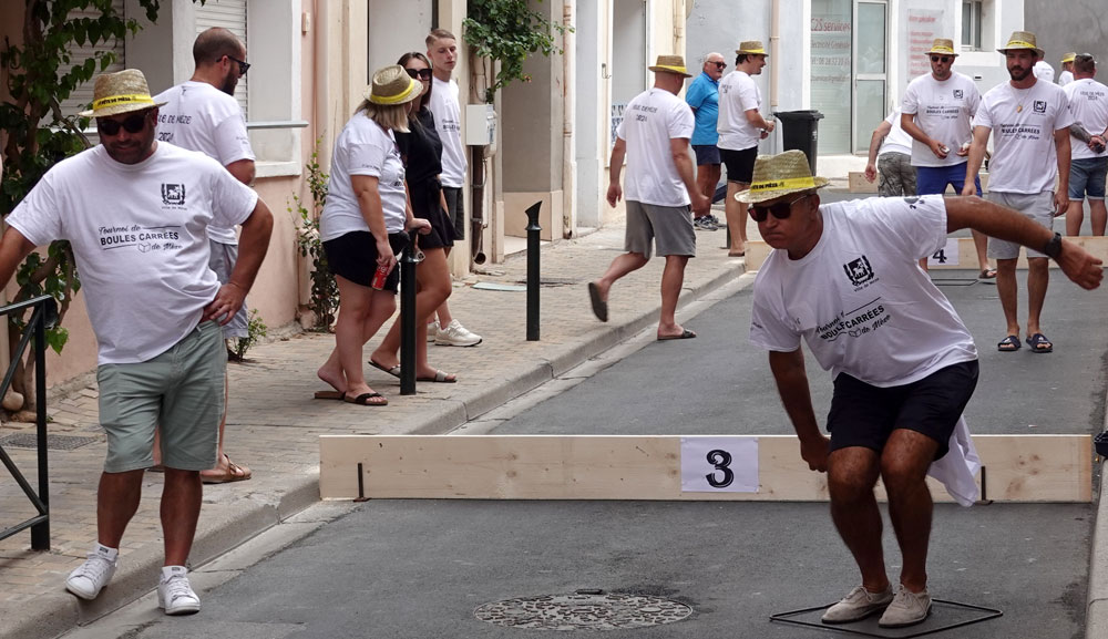Pour la deuxième année, le concours de boules carrées organisé par la Ville de Mèze, en partenariat avec 2MAD et le café de Marius a marqué le début de la fête.