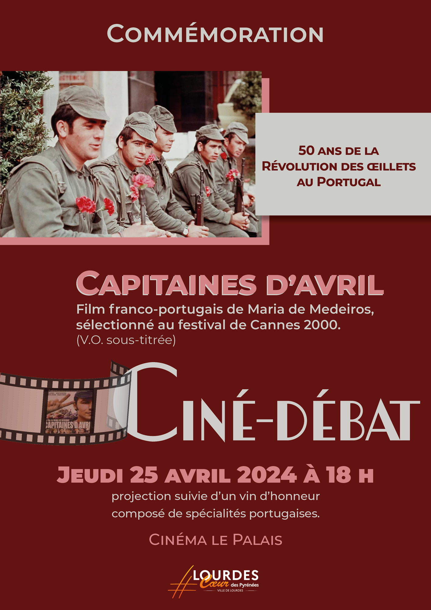 La Ville de Lourdes, attachée aux valeurs de fraternité, tient à célébrer les 50 ans de la Révolution des Œillets lors d’une soirée spéciale jeudi 25 avril 2024 à 18 h au Palais des Congrès de Lourdes.