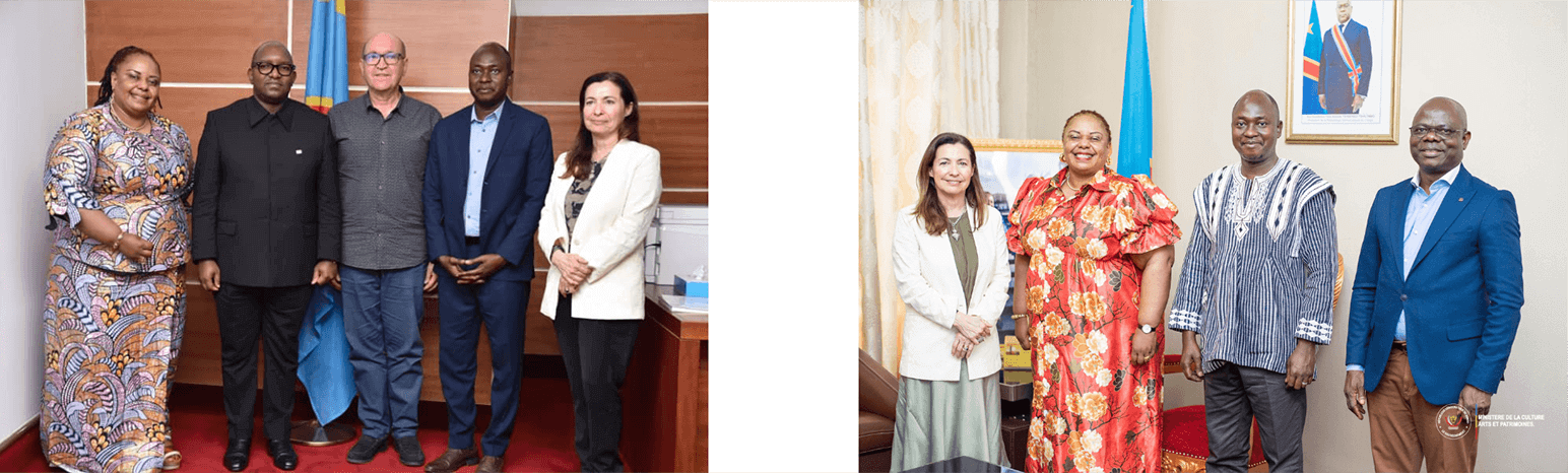 Teresa PATRÍCIO, Boussad AICHE et Bély NIANGAO ont rencontré S.E. Jean-Michel Sama Lukonde Kyenge (Premier Ministre de la RDC à l'époque) et S.E. Catherine Kathungu Furaha (Ministre de la Culture de la RDC) le 27 mars 2024, pour présenter la phase II du projet d'inventaire du patrimoine culturel national de la RDC.