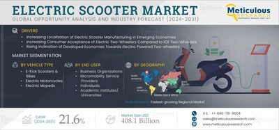 View original content:https://www.prnewswire.co.uk/news-releases/electric-scooter-market-to-reach-408-1-billion-by-2031--driven-by-growing-localization-of-electric-scooter-production-in-emerging-economies-and-increasing-consumer-preference-for-electric-two-wheelers---exclusive-report-by-metic-302263828.html [https://www.prnewswire.co.uk/news-releases/electric-scooter-market-to-reach-408-1-billion-by-2031--driven-by-growing-localization-of-electric-scooter-production-in-emerging-economies-and-increasing-consumer-preference-for-electric-two-wheelers---exclusive-report-by-metic-302263828.html]