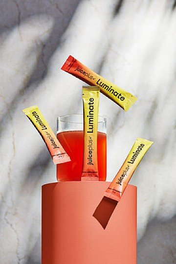 Juice Plus+ Luminate comes in a tasty Berry + Mango flavored mix which can be part of a once-daily self-care ritual. A plant-based drink supplement, free from gluten, synthetic sweeteners, colours or flavourings ensuring a delicious experience every time you sip. There's no better way to set yourself up for a productive day, leaving you time to do the things you most enjoy doing. It is the perfect on-the-go boost which you can enjoy hot or cold, still or fizzy -- you decide!