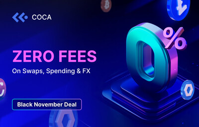 HONG KONG, Nov. 5, 2024 /PRNewswire/ -- This November, COCA is thrilled to announce its Zero-Fee Black November offer, delivering one of the most competitive zero-fee crypto wallet and card experiences in the industry. With zero fees on swaps, card spending, and FX, COCA is dedicated to helping users keep more of their crypto gains by reducing the costs that often come with swapping and spending cryptocurrencies in the real world.