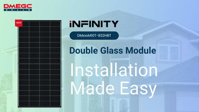 DONGYANG, China, Dec. 19, 2024 /PRNewswire/ -- DMEGC Solar [https://www.dmegcsolar.com/] is pleased to introduce the new and innovative member of the Infinity Series: the DMxxxM10T-B32HBT double glass module in a compact and easy-to-install design. Specifically designed for single-family homes and limited roof space, this module with its proven 2 x 2 mm glass structure, dimensions of 1542 x 766 x 30 mm and low weight of only 15.3 kg, allows for optimal roof space utilisation using the latest module technologies with the N-type TOC cell. The modules are expected to be available from the end of March/beginning of April 2025.