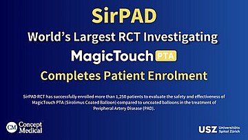 Principal Investigators Prof. Dr. med. Nils Kucher and Prof. Dr. med. Stefano Barco, from the University Hospital Zurich, who leads this ambitious study, said, "Sirolimus-coated balloons represent a promising technology in treating symptomatic PAD, supported by evidence primarily from studies with surrogate endpoints. While trials like SIRONA and ongoing studies such as SirPAD are expanding knowledge, robust data from randomized controlled trials with clinical outcomes are needed to guide treatment and shape future guidelines. This result, having been able to randomize so many patients in a PAD device study, is unprecedented and we are very thankful to all investigators and patients for having supported the trial" on achieving the significant milestone of enrolling 1,250+ patients and successfully completing this phase of the study.