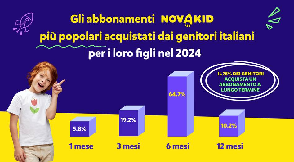 “Nel 2025, la nostra attenzione sarà rivolta a rendere Novakid ancora più accessibile e coinvolgente per le famiglie in Italia”, ha dichiarato Giulia Bettonte, Team Lead di Novakid Italia. “Stiamo lavorando per ottimizzare i nostri pacchetti di abbonamento per soddisfare meglio le esigenze dei clienti, ad esempio offrendo opzioni per i pagamenti rateali e supportando la crescente domanda di piani a lungo termine. Inoltre, lavoreremo per aggiungere nuove funzionalità, strumenti e giochi basati sull'intelligenza artificiale, per rendere l'apprendimento ancora più piacevole e d'impatto per i bambini.”