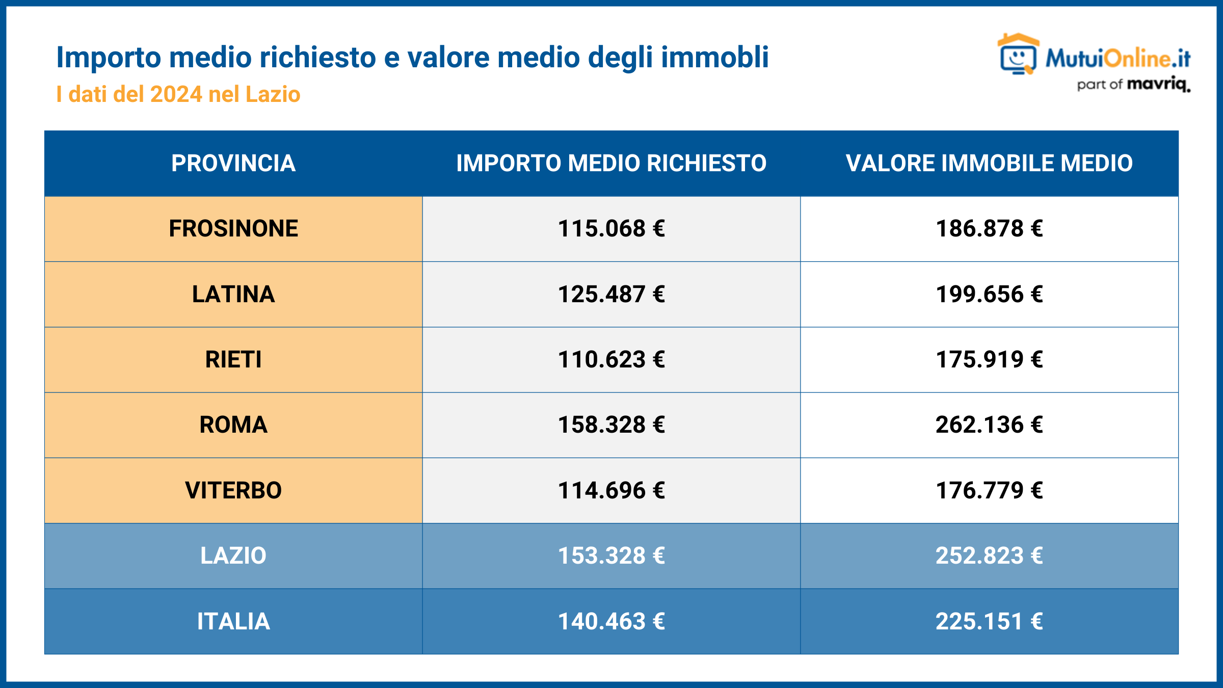 Nel Lazio età media dei richiedenti oltre i 41 anni, più di un anno sopra la media nazionale. Valore medio degli immobili e gli importi medi richiesti più alti rispetto al resto d’Italia
