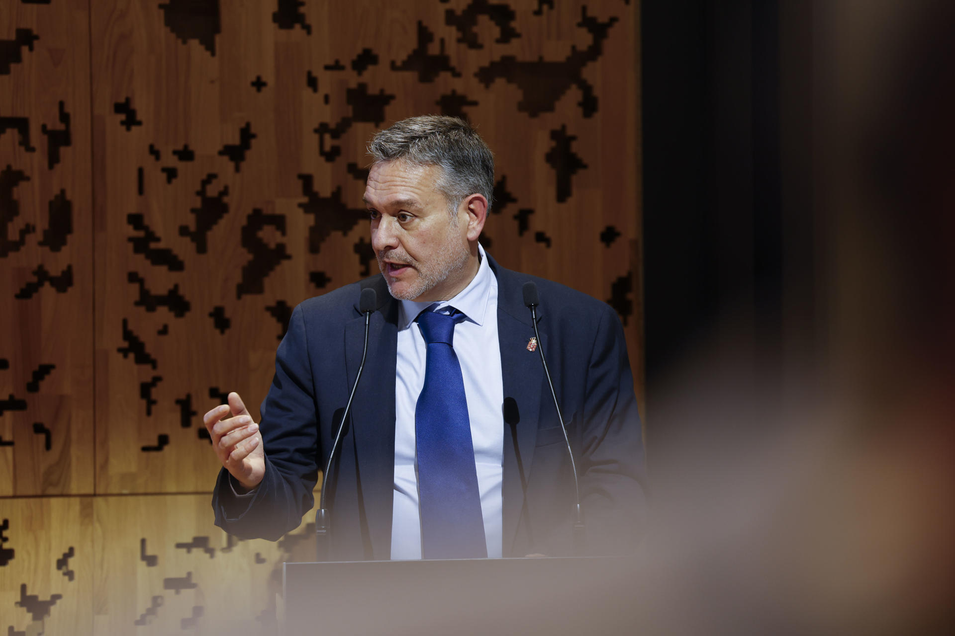 El consejero de Universidad, Innovación y Transformación Digital, Juan Luis García, interviene en la jornada ‘Evento Horizonte 2035: impulso de la innovación en la industria alimentaria’, organizada por Eatex Food Innovation Hub (liderado por CNTA e impulsado por el Gobierno), este miércoles en Madrid.-EFE/ Javier Lizón