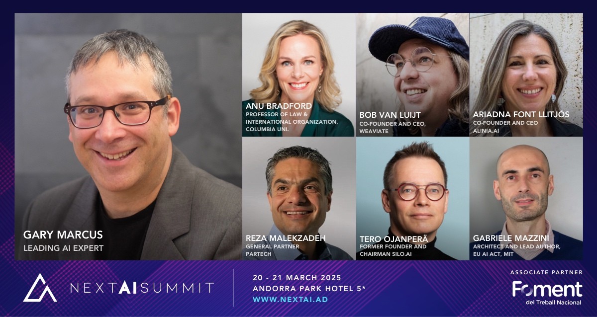 El Next AI Summit tindrà lloc els dies 20 i 21 de març de 2025 a l’Andorra Park Hotel, a Andorra. Reunirà la comunitat europea d’IA amb 20 ponents de renom mundial, incloent-hi figures clau de Silicon Valley i Europa. Serà una oportunitat única per connectar amb líders empresarials, inversors, acadèmics i emprenedors del sector.