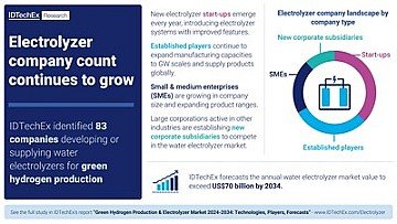 View original content:https://www.prnewswire.co.uk/news-releases/electrolyzer-market-consistent-uptick-in-number-of-green-h2-players-finds-idtechex-research-302114604.html [https://www.prnewswire.co.uk/news-releases/electrolyzer-market-consistent-uptick-in-number-of-green-h2-players-finds-idtechex-research-302114604.html]