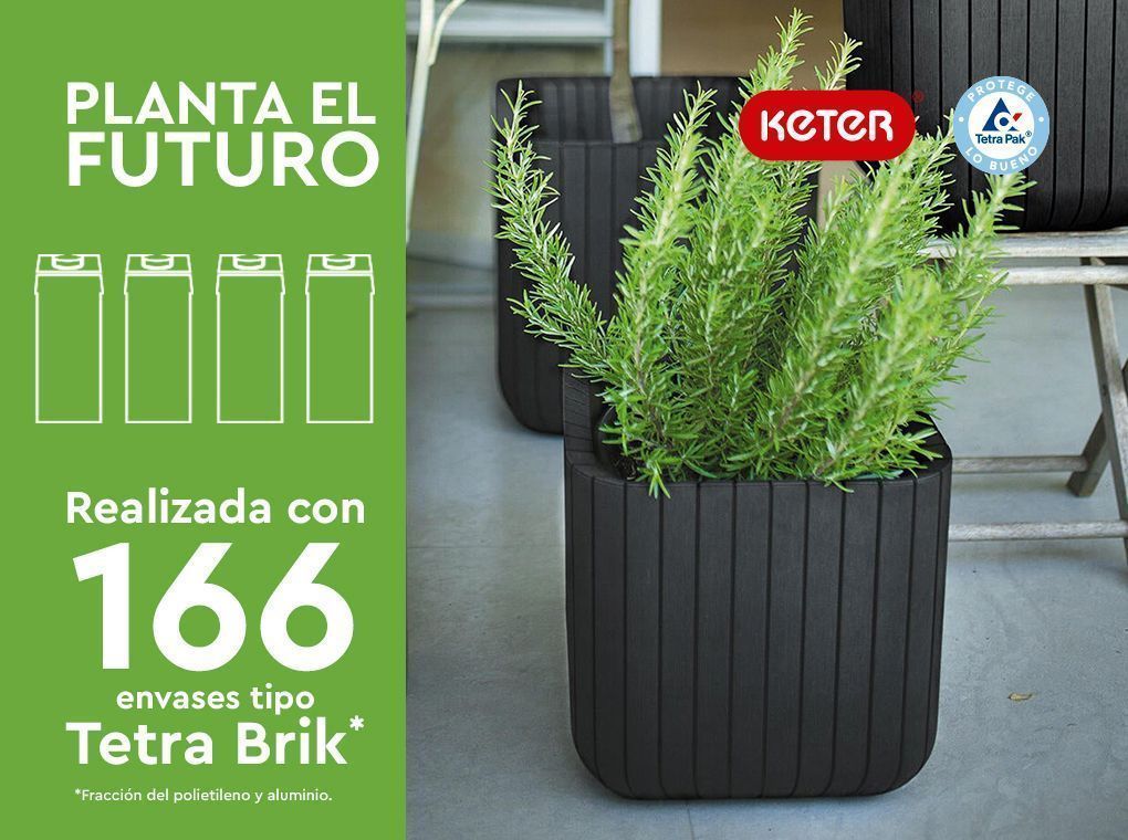 Keter, líder en casetas, mobiliario y soluciones para el hogar, y Tetra Pak, referente mundial en envases, han colaborado para lanzar una innovadora línea de macetas fabricadas con hasta un 98% de polietileno y aluminio reciclados a partir de envases de cartón para bebidas. Se trata de un proyecto, enmarcado en la iniciativa «Planta el Futuro», que busca promover la economía circular mediante la revalorización de residuos como materias primas de calidad.