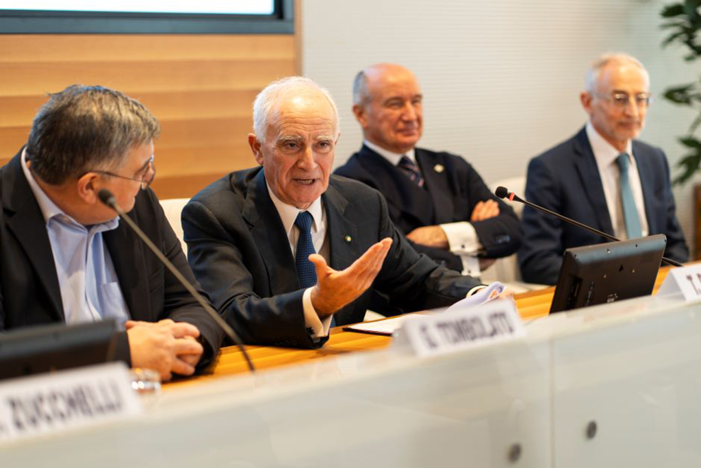 Il Commissario Straordinario dell’ACI, Generale Tullio Del Sette (al centro), con il Sub-Commissario Giovanni Battista Tombolato (a sinistra) e il Presidente ASI Alberto Scuro (a destra).