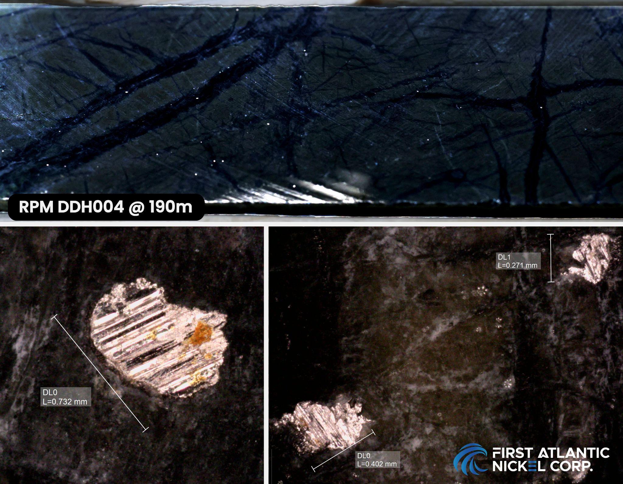 VANCOUVER, British Columbia, Feb. 19, 2025 (GLOBE NEWSWIRE) -- First Atlantic Nickel Corp. (TSXV: FAN) (OTCQB: FANCF) (FSE: P21) ("First Atlantic" or the "Company") is pleased to announce a significant expansion in drilling of visible awaruite nickel-alloy mineralization at the RPM Zone within its 100% owned, district-scale, 30 kilometer-long Atlantic Nickel Project in Newfoundland (the “Atlantic Nickel Project” or the “Project”). RPM Drill Hole 4 (AN-24-05), the fifth and final hole of Phase 1, was a significant 400-meter step-out to the north of the RPM Discovery Holes 1, 2, and 3. The drill hole intersected abundant visual awaruite, with large grains reaching up to 732 microns, throughout the entire 402-meter interval (see Figures 1 to 3). This drilling confirms large-scale consistent mineralization and expands the RPM Zone to at least 400 meters long and 500 meters wide, with mineralization remaining open in all directions.