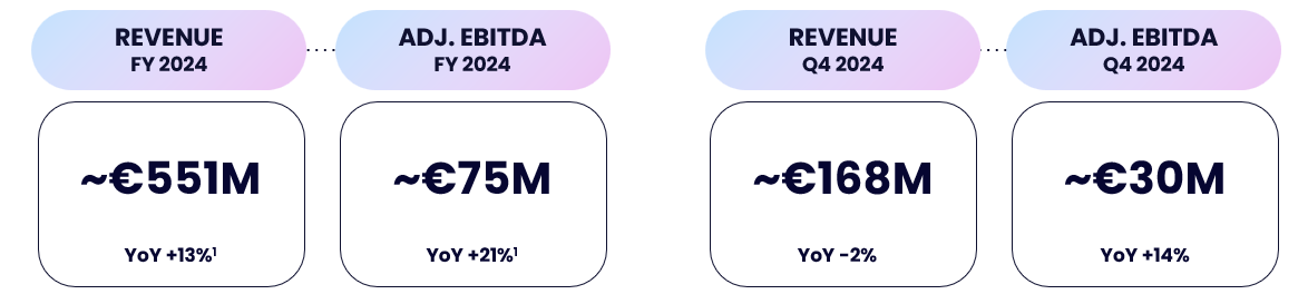 - Q4 2024 Adjusted EBITDA up 14% YoY from € 26.4 million to € 30.1 million